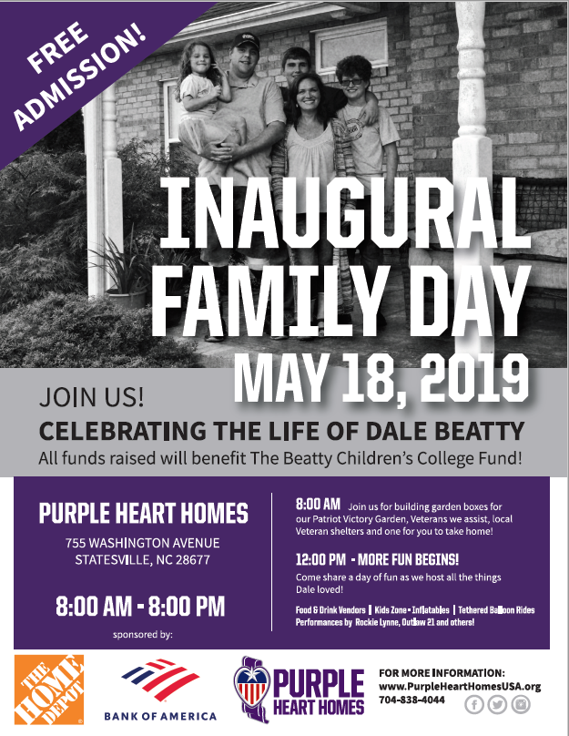 Where: Purple Heart Homes, 755 Washington Ave., Statesville, NC 28677